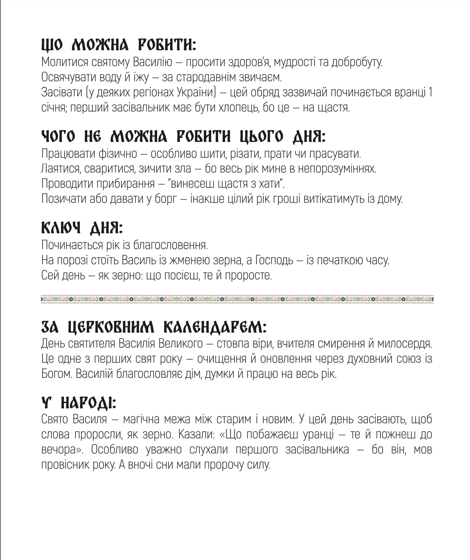 На кожній сторінці на вас чекатиме унікальна інформація, що допоможе стежити за традиціями й важливими подіями року.