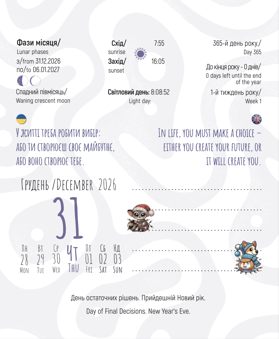 Він стане вашим персональним навігатором року: нагадає про важливе, підтримає у хвилини сумнівів і додасть натхнення кожному дню .